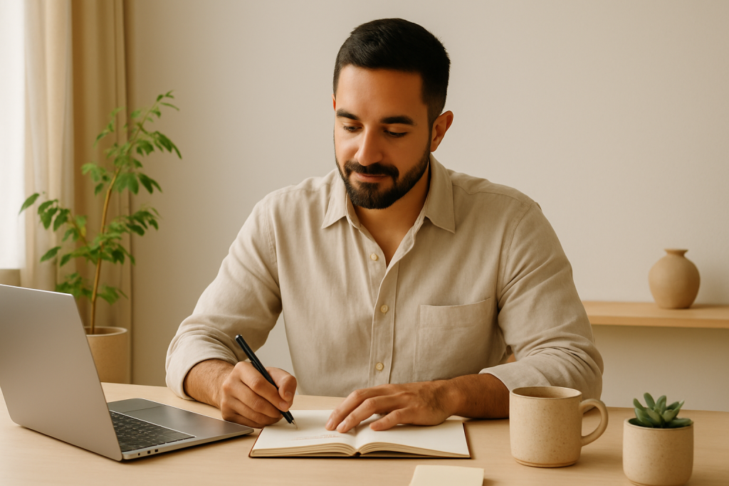 Te acompaño a crear un nombre potente, sonoro, legalmente registrable y que tenga sentido para lo que ofreces. Además, le damos forma a cómo habla tu marca: su tono, su voz, sus frases clave. Todo eso que convierte un negocio en una marca con alma.